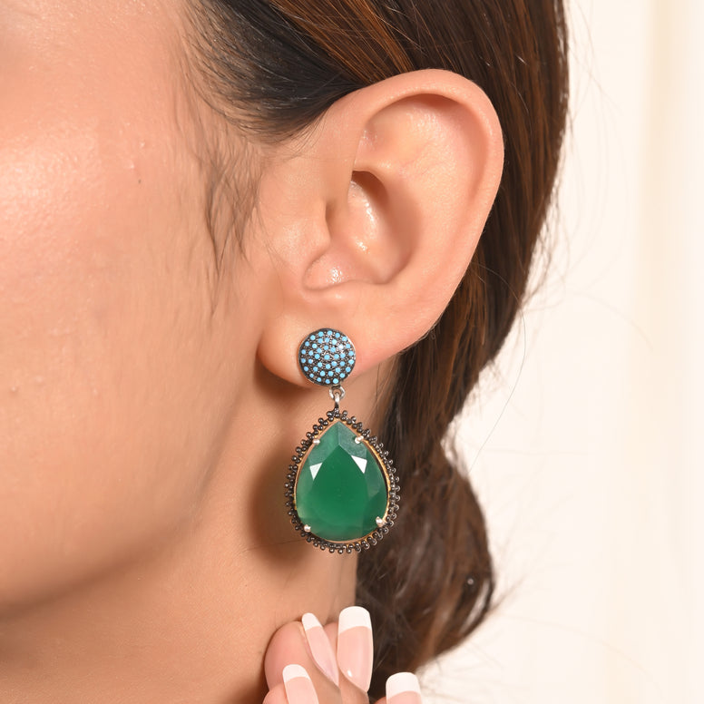 The Midnight Sky Duo Tops feature semi-precious turquoise and onyx stones set in a classic prong design, showcasing contrasting blue and black tones for bold, versatile everyday or contemporary occasion styling.