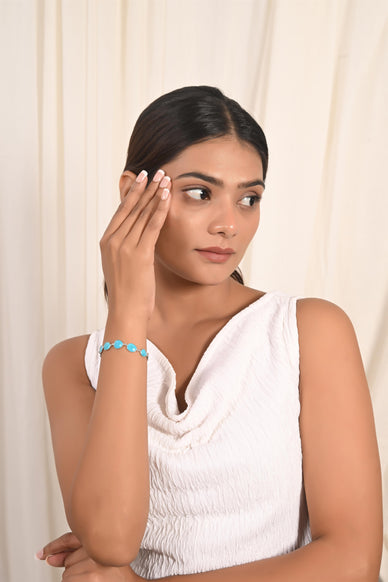 The Oval Turquoise Bracelet features smooth oval stones in calming blue tones, offering a fresh, balanced look that suits both everyday and relaxed occasions.