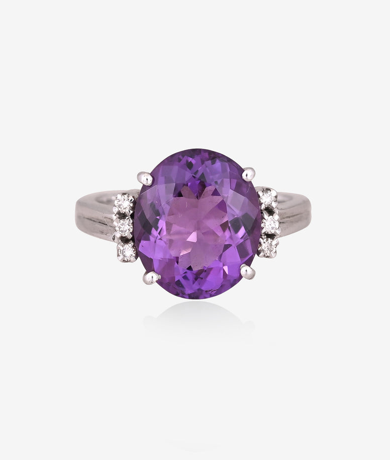 The Purple Aura Amethyst Spark Ring showcases a vibrant amethyst with subtle diamond accents, offering a bold yet elegant design perfect for everyday wear or special occasions.