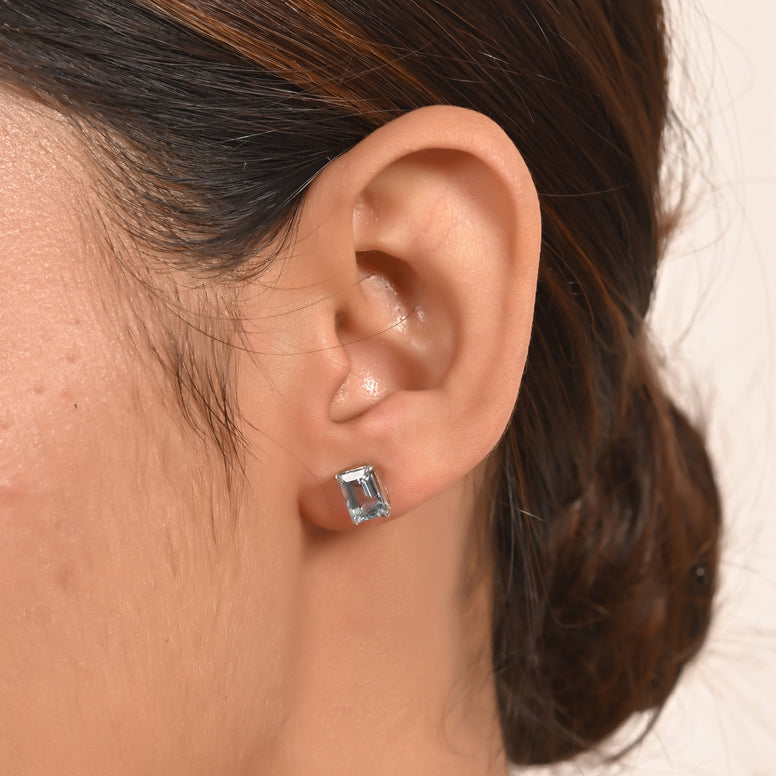 The Tranquil Radiance Tops showcase soft blue aquamarine stones in a classic prong setting, offering serene elegance and subtle brilliance for everyday wear or understated special occasions.